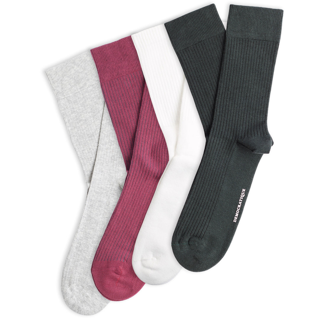 4-pack Fine Rib and Relax Socks Grey / Green / Bordeaux